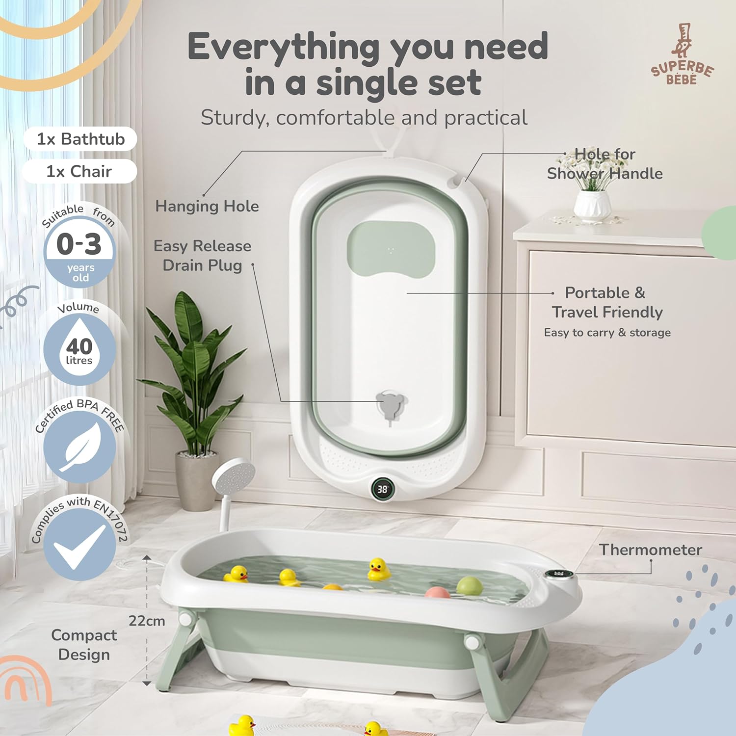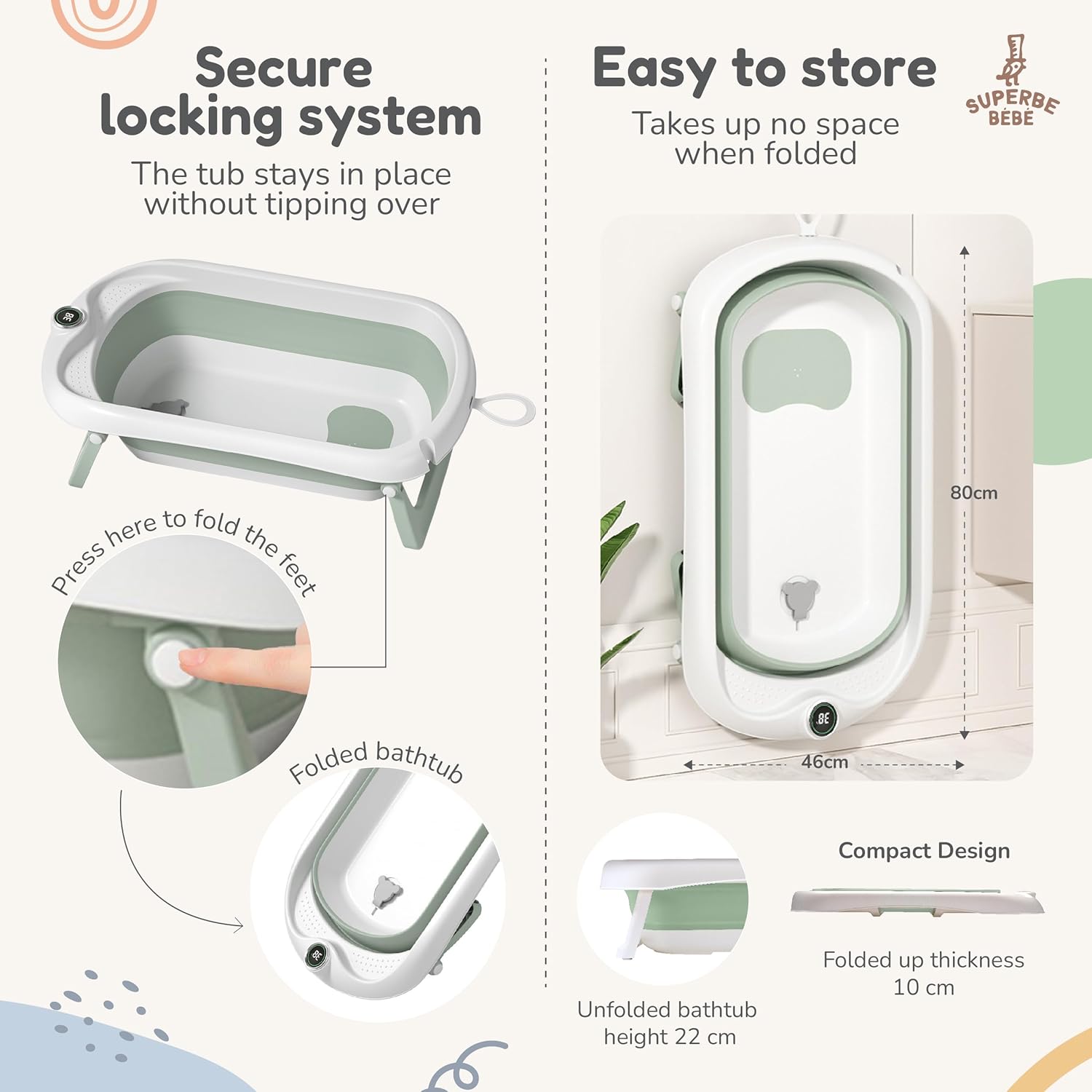 • BABY ESSENTIALS FOR NEWBORN: The foldable baby bath comes with a bath seat and an integrated digital thermomete