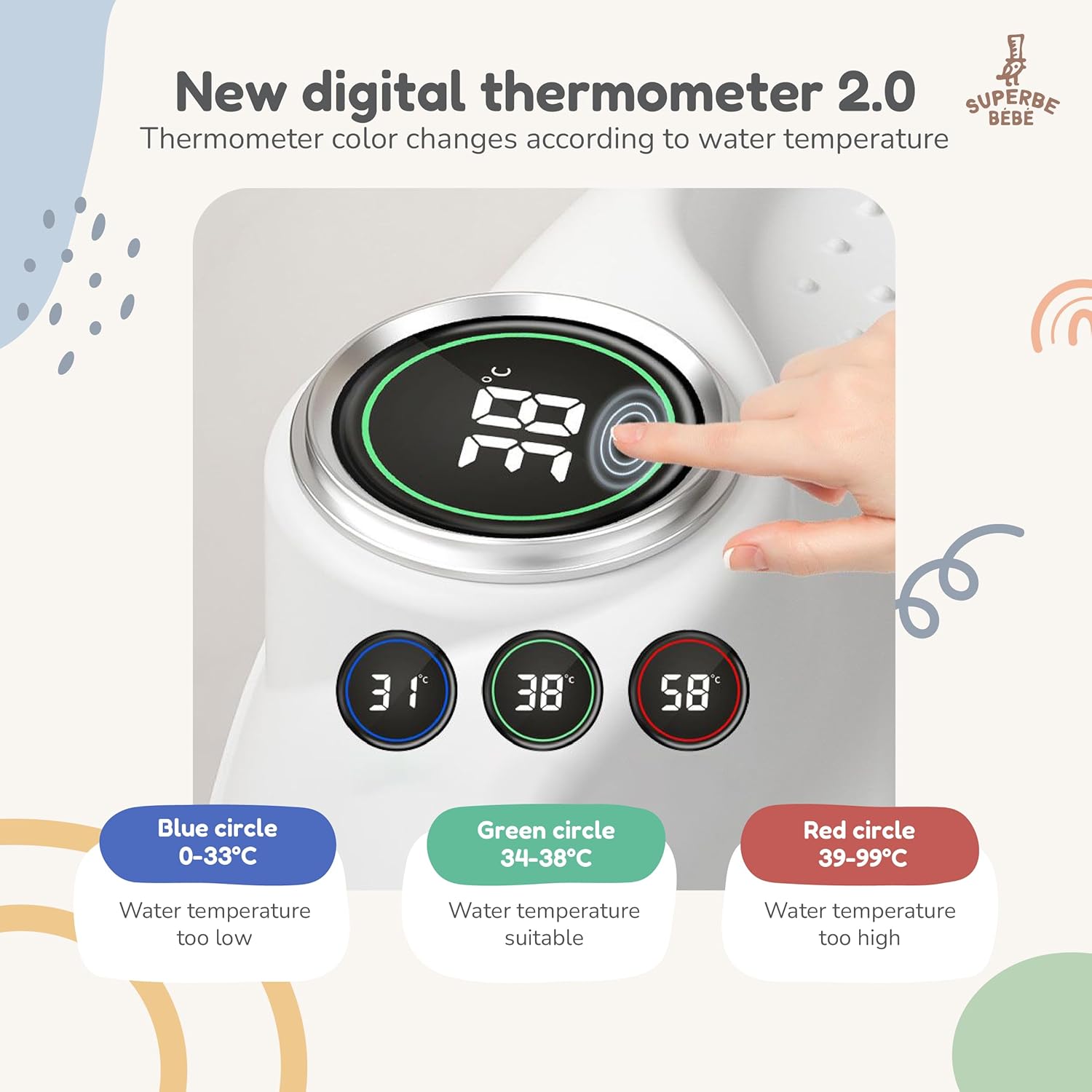 • MONITOR THE BATH TEMPERATURE: Thanks to its digital thermometer, you can easily monitor the water temperature.
