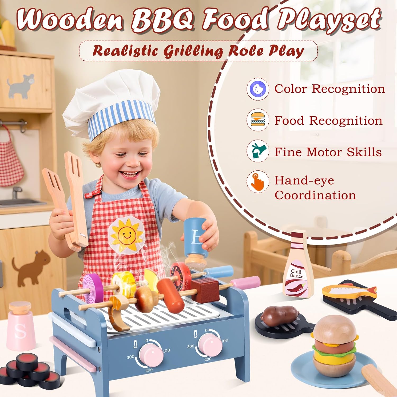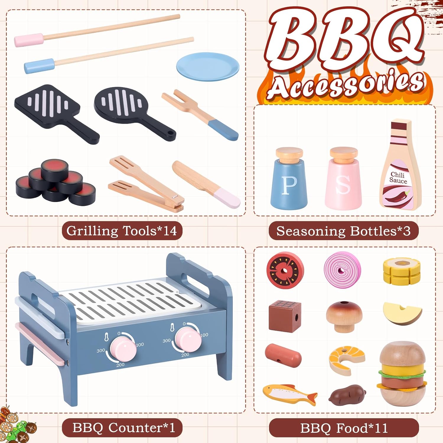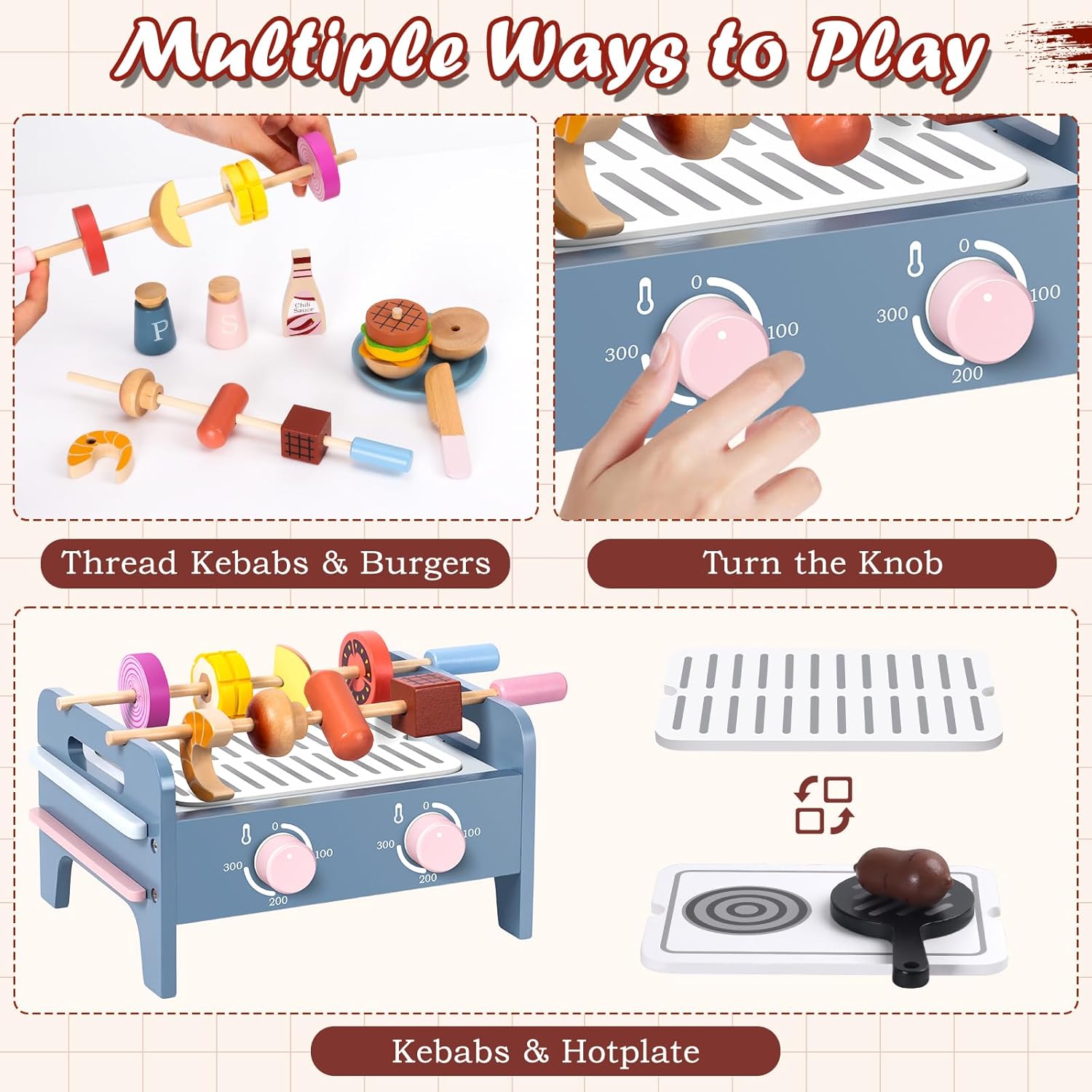 - 🎁【Growing Gift】This wooden kitchen-BBQ toy lets your little one transform into a mini chef, enjoying realistic grilling fun!An ideal gift for Christmas, birthdays and New Year celebrations