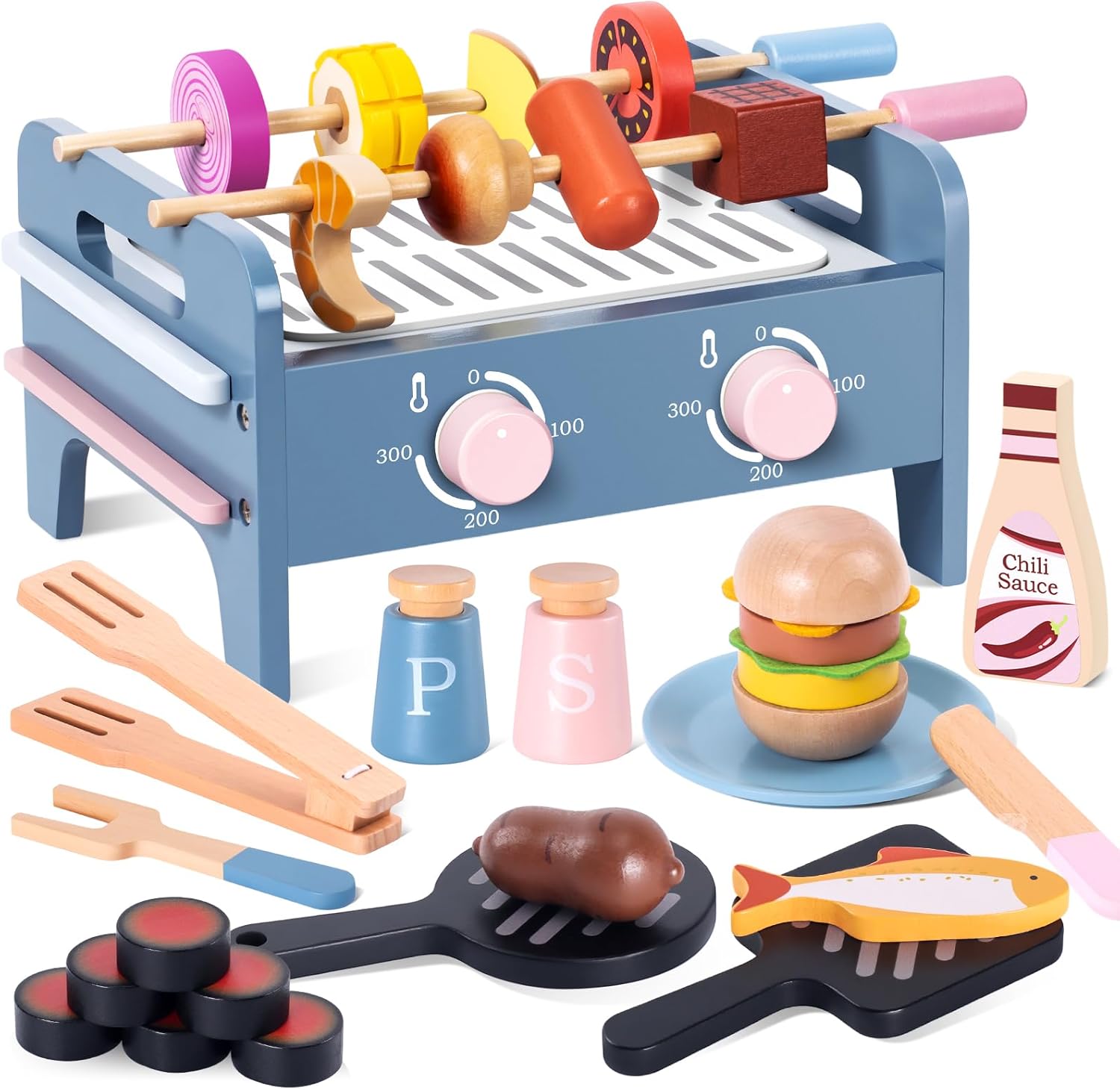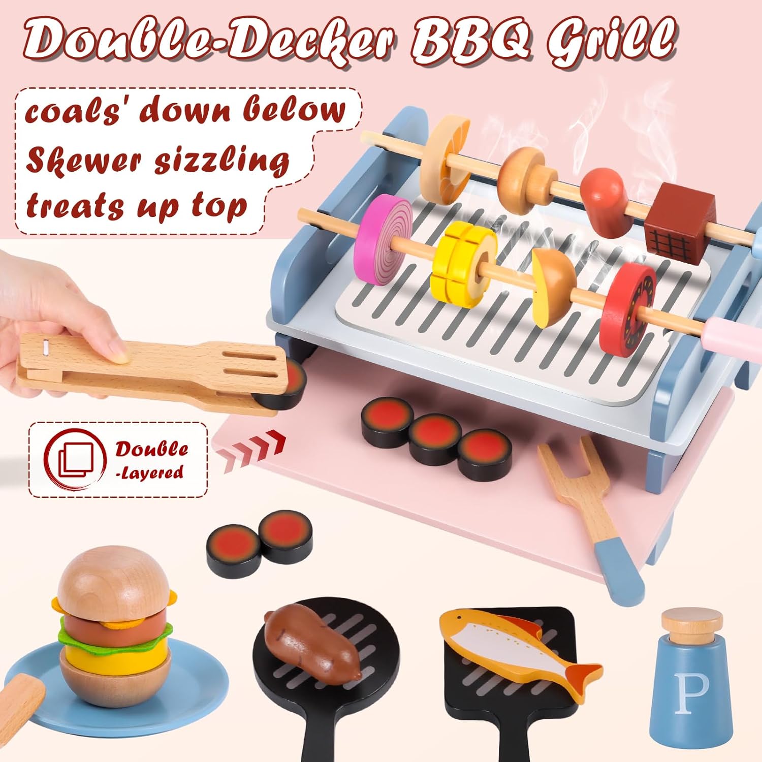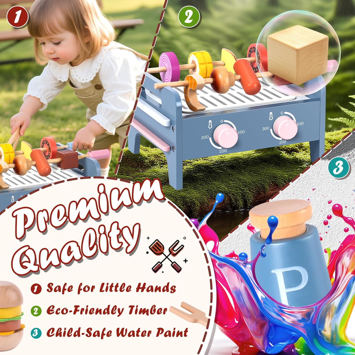 - 🎁【Growing Gift】This wooden kitchen-BBQ toy lets your little one transform into a mini chef, enjoying realistic grilling fun!An ideal gift for Christmas, birthdays and New Year celebrations