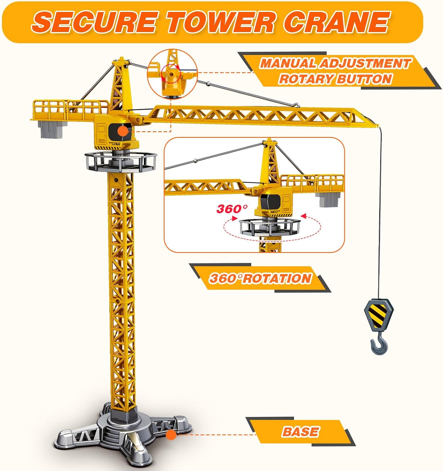 - Top Material of Construction Vehicle Toys: Made from high-quality and non-toxic ABS plastic, this construction toys are built to withstand even the most enthusiastic play. The vehicles in the set feature flexible body joints, and a 360° rotating tower crane with bi-directional weight balance and flexible hooks, providing a realistic construction experience for 3-7 year old kids.