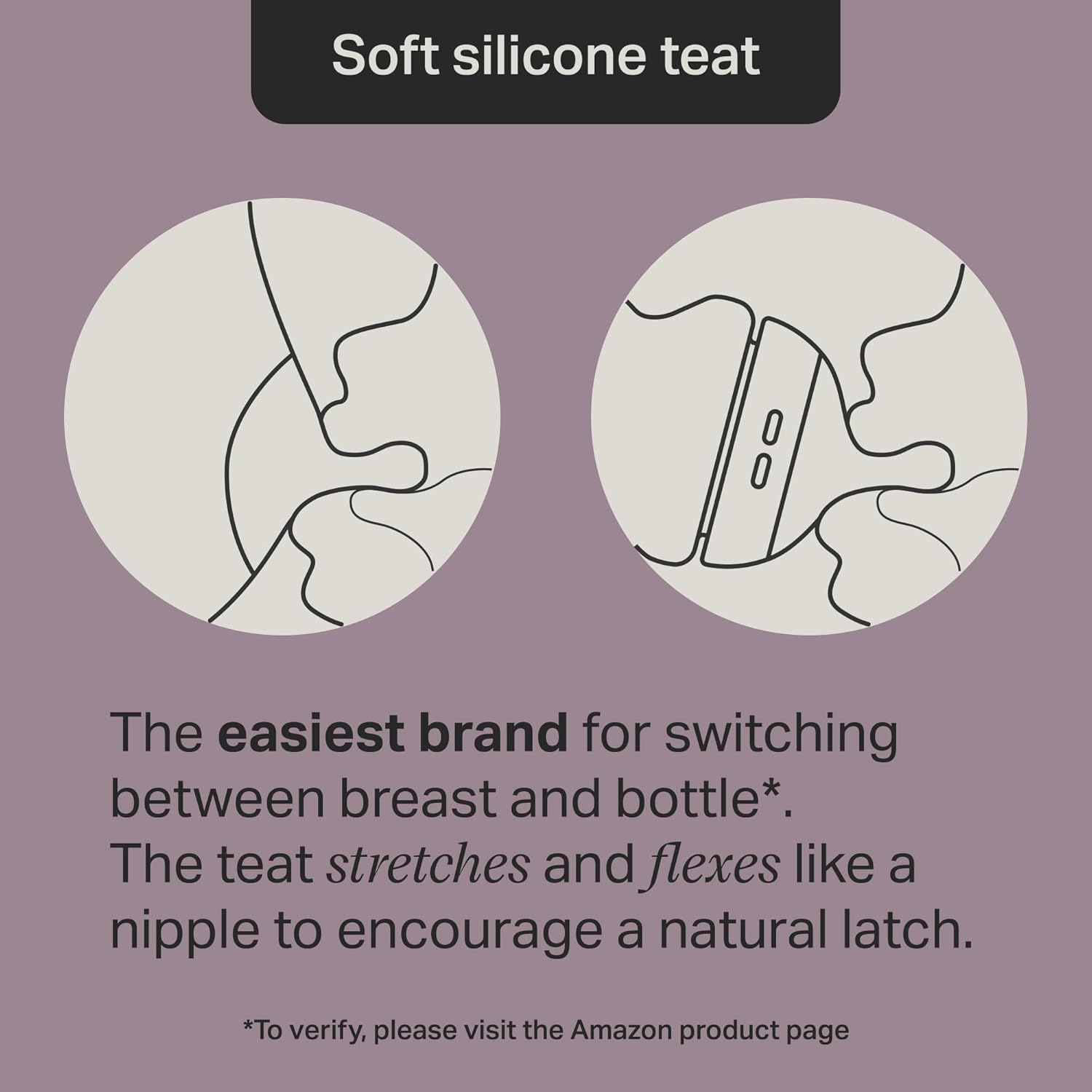 - Paced feeding: Each soft silicone baby bottle teat flexes and stretches like a breast to help your baby feed comfortably at their own pace